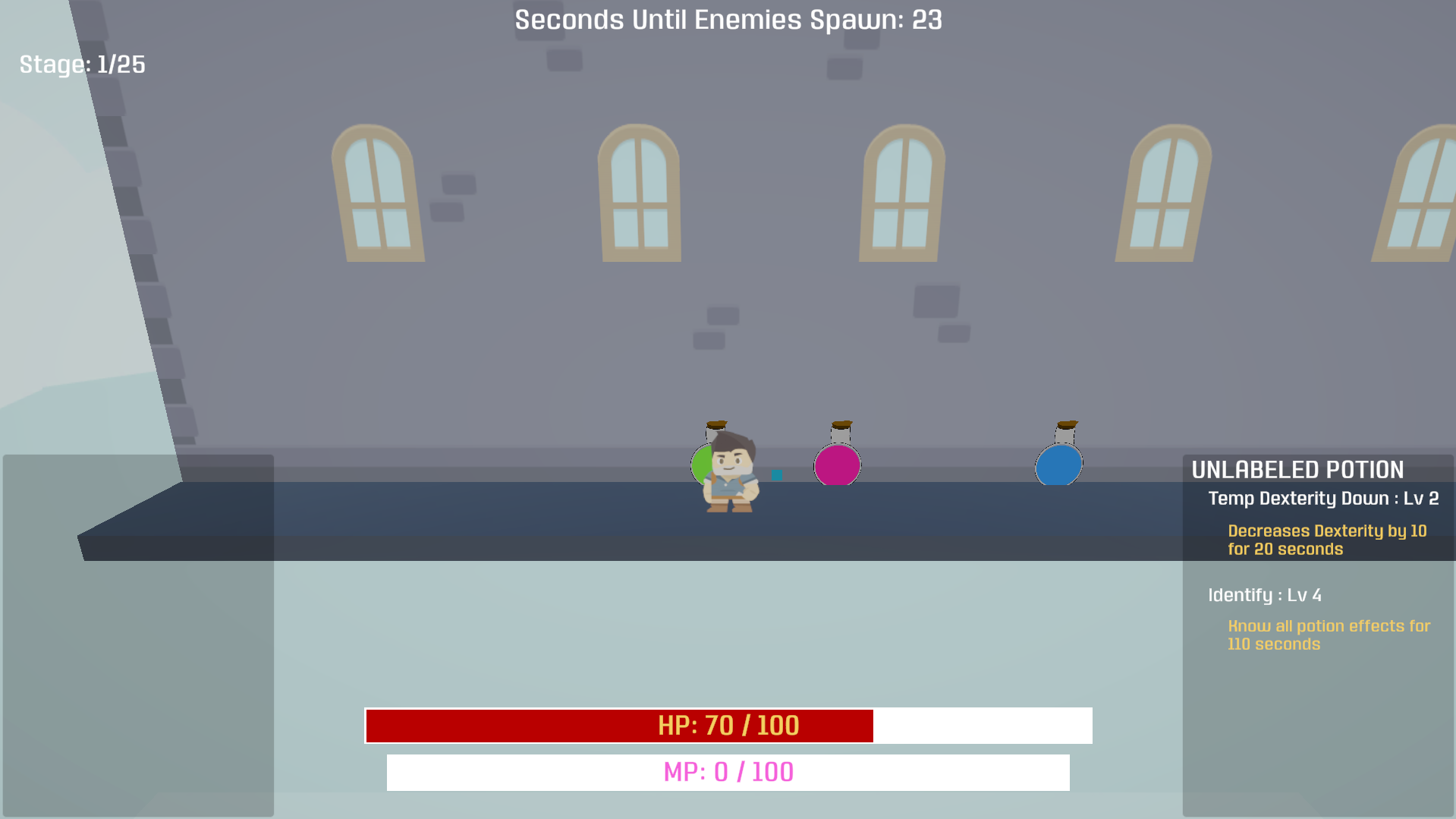 An action roguelike where you invade the mad alchemist's lair and defeat waves of enemies while carefully using potions